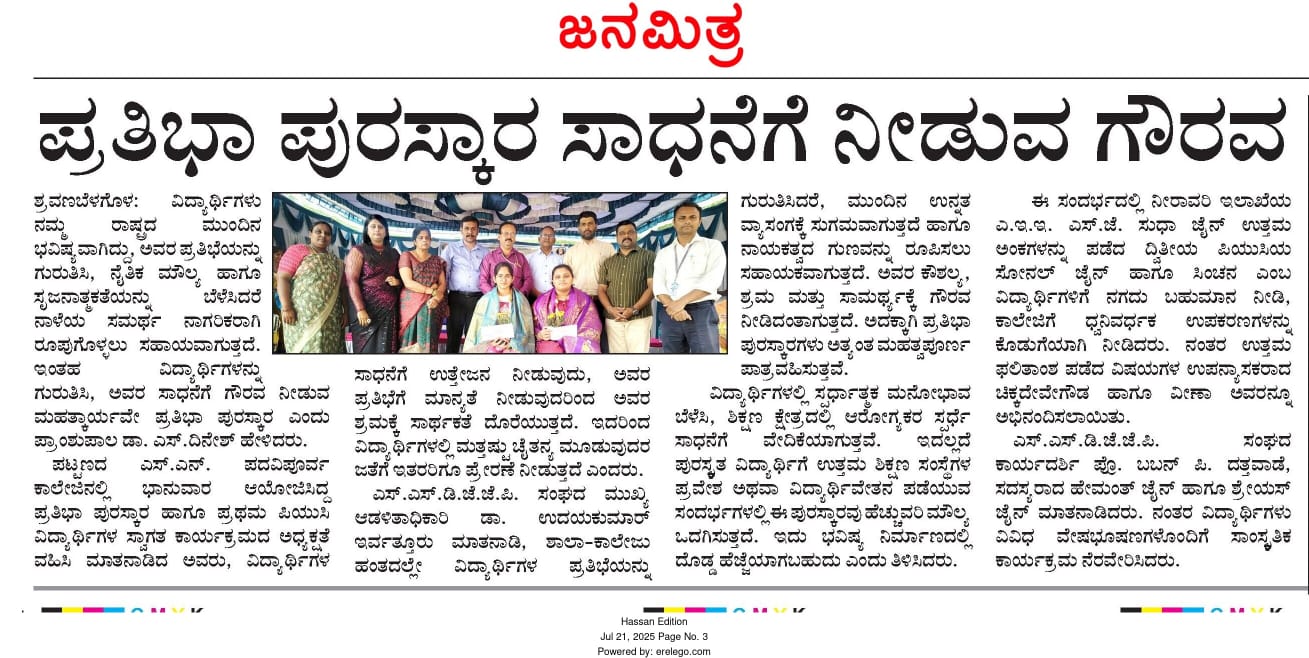 SN PU College recently organized the Pratibha Puraskara Felicitation Program to honor students and achievers for their outstanding academic and extracurricular performances. The event highlighted the importance of education, values, and cultural heritage, emphasizing the role of teachers and parents in shaping the future of young minds.